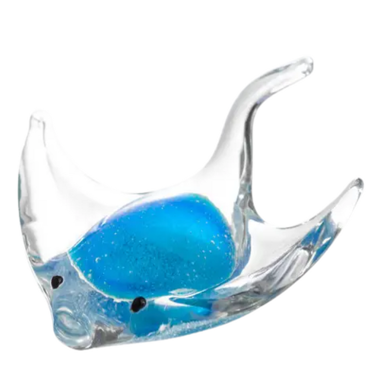 Hand‑blown and beautifully shaped, this blue glass stingray features smooth curves, vibrant color, and a polished finish that captures the elegance of underwater life. Perfect for coastal décor, collectors, or anyone who loves unique glass art.