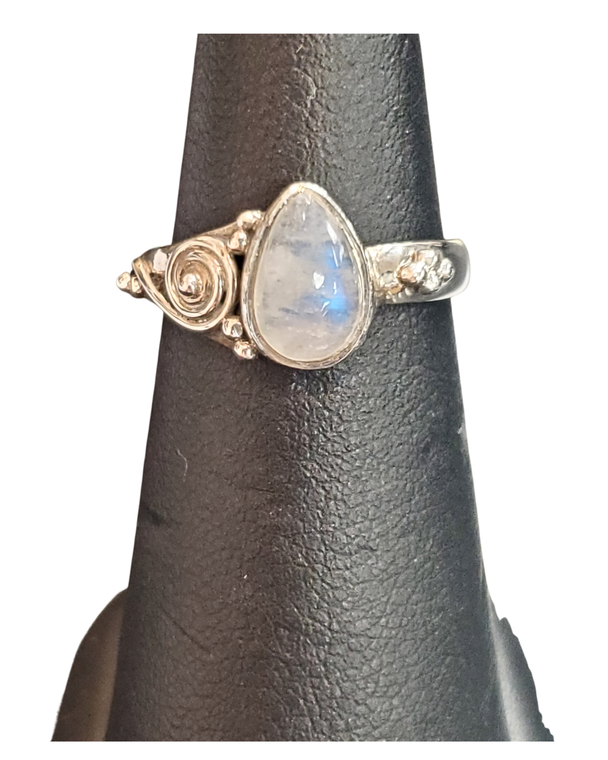 Moonstone tear swirl Silver Ring S6