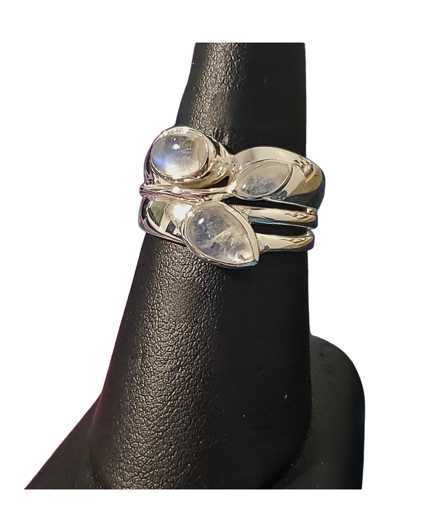 Rainbow Moonstone 3 stone thick band Silver Ring S9